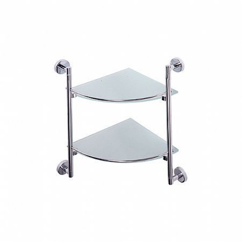 Угловая полка с двумя стеклянными ярусами размером 25х25 см. Угловой дизайн обеспечивает максимальное использование пространства.