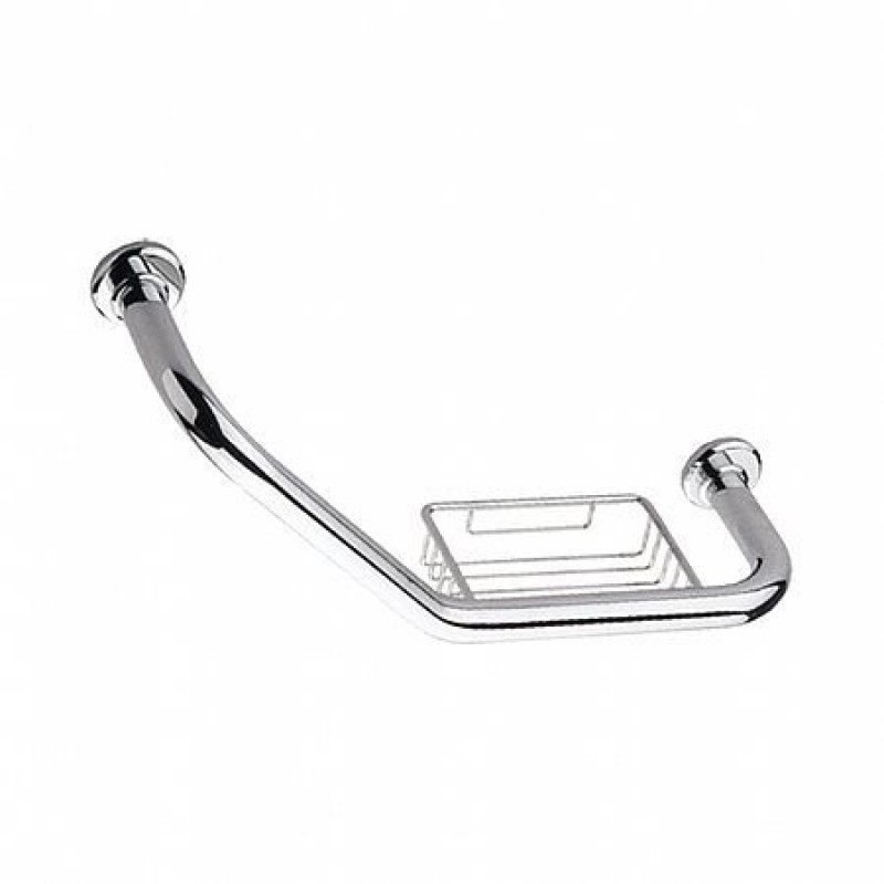 Поручень для ванных комнат необычной формы. Наличие встроенной решеточной мыльницы делает ванну более практичной. Размер 47 см.