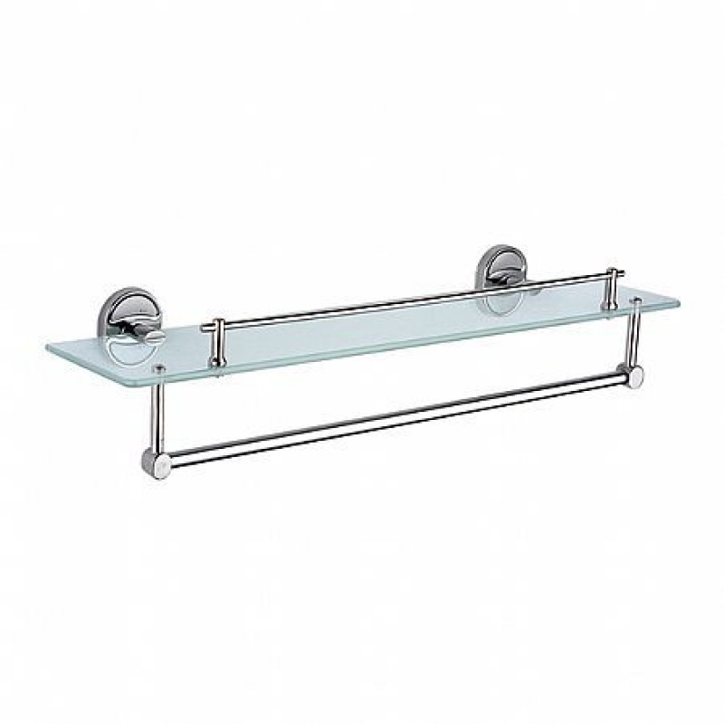 Полка из стекла размером 52х12 см,с ограничителем. Наличие встроенного держателя для полотенца позволяет экономить пространство в ванной комнате. На креплениях имеются матовые вставки.