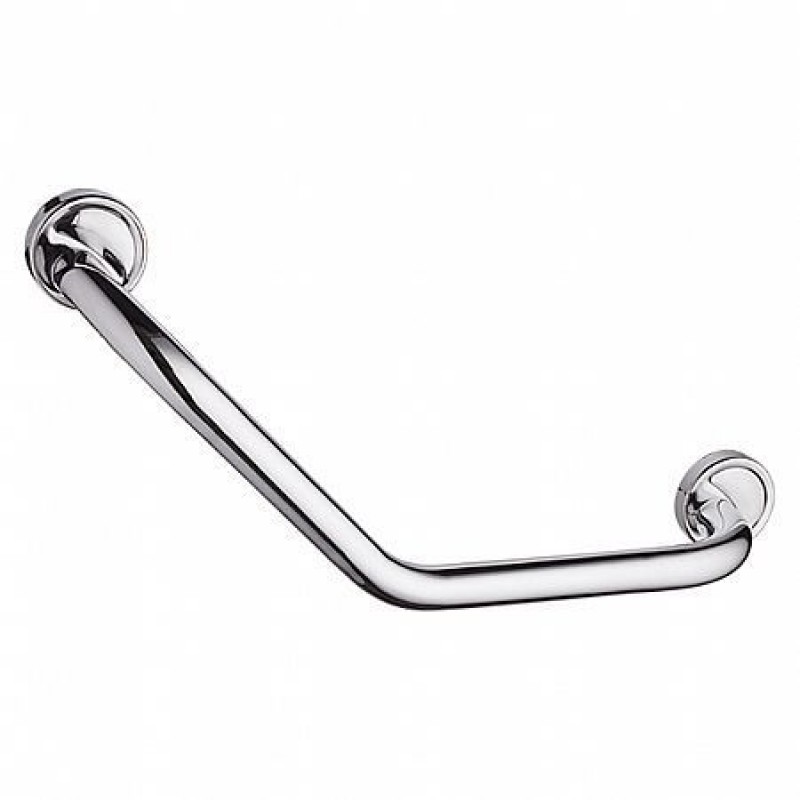 Поручень для ванных комнат необычной формы. Форма крепления в виде круга, с глянцевыми вставками.
