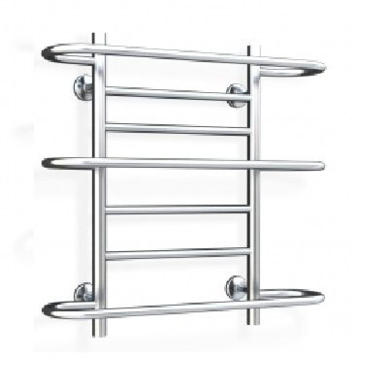 Ростела Трио – это полотенцесушитель, либо другими словами сушка для полотенцев в ванную комнату с нижним подключением, расстояние между вертикальных планок 400 см, которое равно и расстоянию межосевому, планки горизонтальные ф-образной формы, 7 перемычек, три внешние и четыре внутренние.