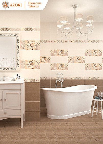 Фото интерьеров комнат, облицованных керамической плиткой Гармония Табакко (Harmonia Tabacco) от производителя Азори (Azori).