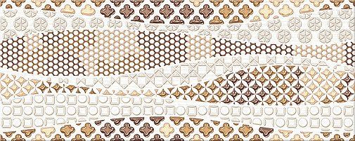 Коллекция в нейтральной цветовой гамме с традиционными двумя коричневыми цветами: кофейный (Harmonia Mocca) и ореховый (Harmonia Tabacco). Графика плиты это микс дерева и текстиля, очень сдержанная по фактуре. Два вида декоративных элемента: «пэчворк» с геометрически-цветочным орнаментом и геометрия-монограмма.