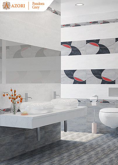Фото интерьеров комнат, облицованных керамической плиткой Пандора Грей (Pandora Grey) от производителя Азори (Azori).