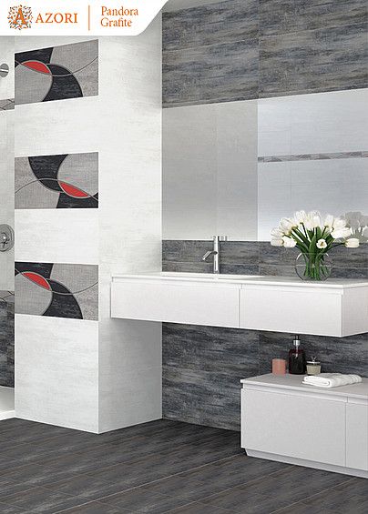 Фото интерьеров комнат, облицованных керамической плиткой Пандора Графит (Pandora Grafite) от производителя Азори (Azori).