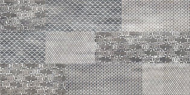 Натуральные эффект древесной фактуры с имитацией ткани на сатинированной глазури. Органический пэчворк – орнаментальное решение одной из облицовочных плит, фольгированные материалы в декоре. Цветовая палитра сосредоточена на натуральных оттенках природы – от пепельно-бежевого до темно-графитового. Цветовое решение декорации создаст сочные акценты в текстильном оформлении интерьера.