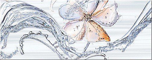 Декоративное панно состоит из 4 частей, с изображением всплесков воды и цветов. Коллекция выпускается в двух цветах - Viola и Blue.