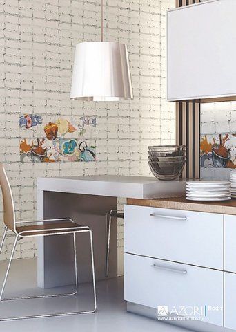 Фото интерьеров комнат, облицованных керамической плиткой Лофт (Loft) от производителя Азори (Azori).