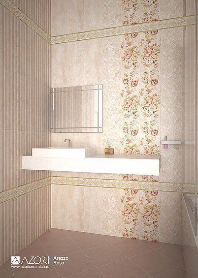 Фото интерьеров комнат, облицованных керамической плиткой Арессо Росо (Arezzo Roso) от производителя Азори (Azori).