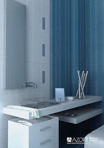 Фото интерьеров комнат, облицованных керамической плиткой Камлот Индиго (Kamlot Indigo) от производителя Азори (Azori).