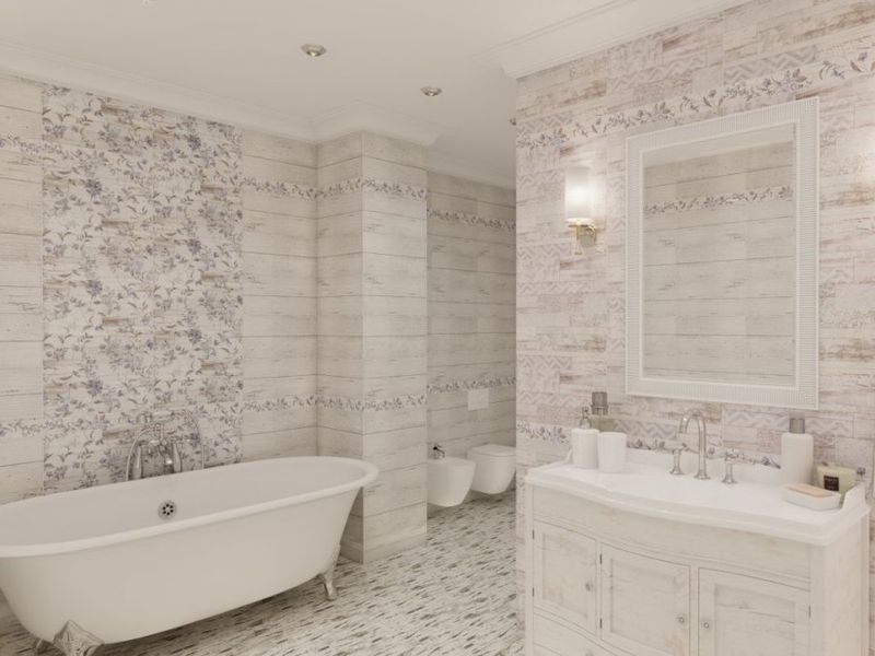 Фото интерьеров комнат, облицованных керамической плиткой Сан -Ремо (San - Remo) от производителя Белани (Belani).