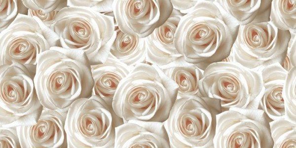 На декоративных плитках изображены белые розы.