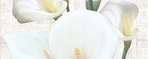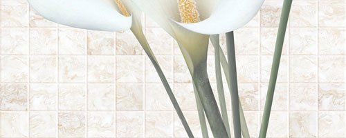 Коллекция выдержена в спокойном бежевом цвете. Фоном плитки является имитация мозаики, это придает интерьеру благородный вид. Вся коллекция представленна базовой плиткой, декоративными вставками, декоративным бордюром и декоративным панно с элементами калл, которые очень выгодно сочетаются друг с другом.
