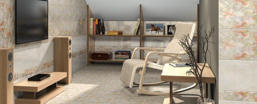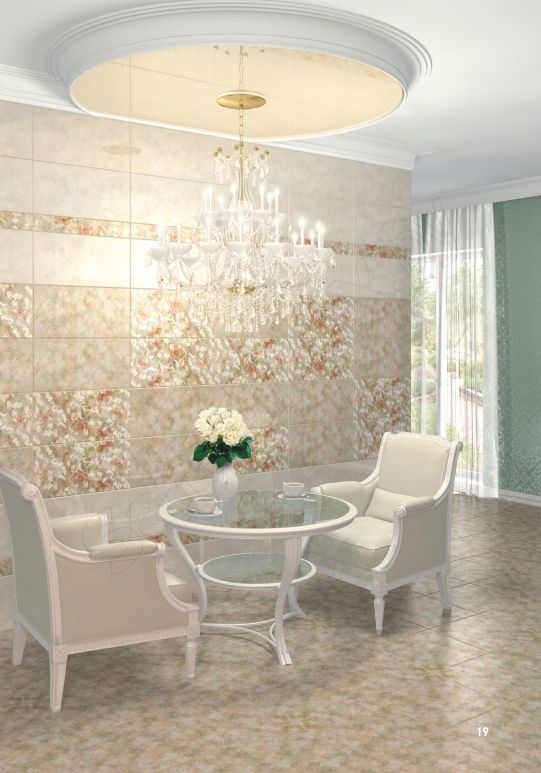Фото интерьеров комнат, облицованных керамической плиткой Луара (Luara) от производителя Белани (Belani).