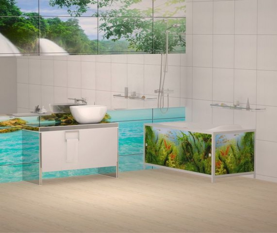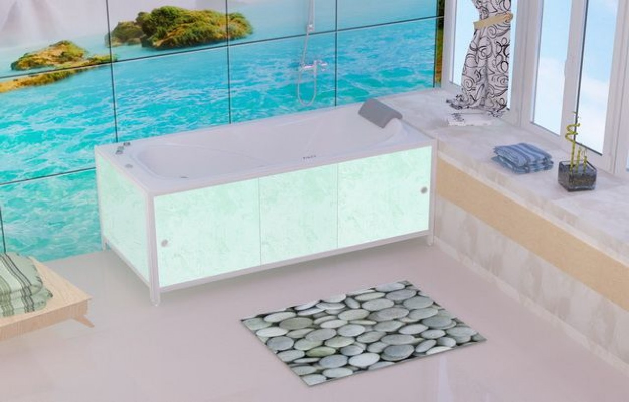 В завершении дизайна ванной комнаты огромную роль играет пластиковый экран под ванну, выполняющий декоративную и практичную функцию. Главная цель монтажа экрана в ванной комнате – скрытие водопроводных и канализационных труб, размещение в свободном пространстве хозяйственных мелочей, предотвращение попадания влаги под ванну. По сути, это универсальный элемент для ванной комнаты.