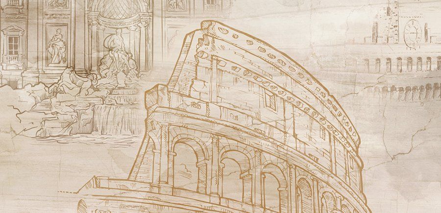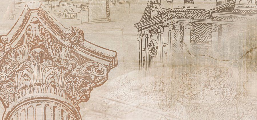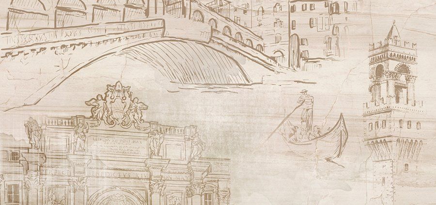 Глянцевая керамическая плитка Golden Tile Savoy Coliseum обладает дизайном под натуральный камень, который составляет великолепные композиции с декорами с изображениями античных зданий и колонн.