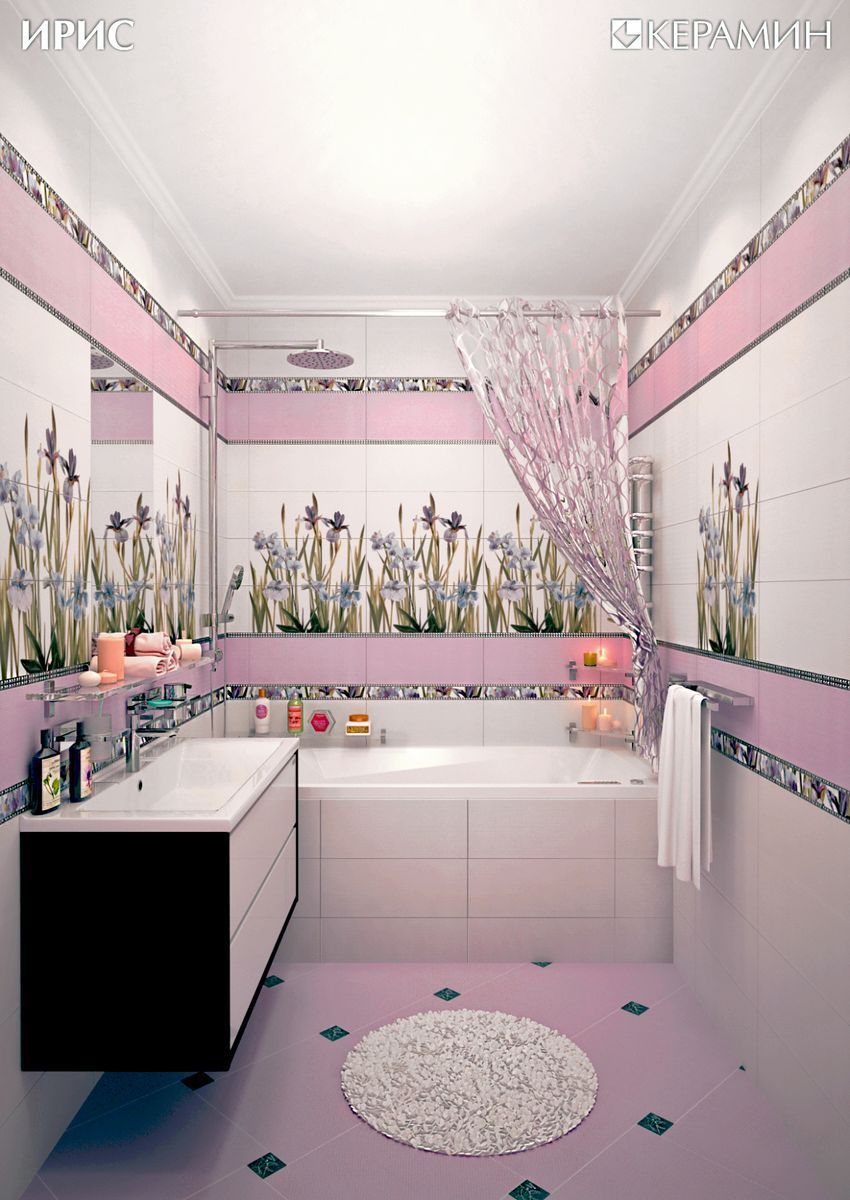 Фото интерьеров комнат, облицованных керамической плиткой Ирис (Iris) Сиреневый от производителя Керамин (Keramin).