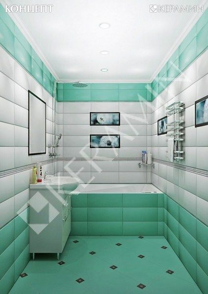 Фото интерьеров комнат, облицованных керамической плиткой Концепт (Concept) Бирюзовый от производителя Керамин (Keramin).