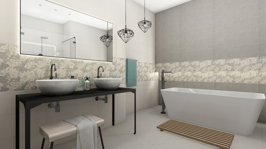 Фото интерьеров комнат, облицованных керамической плиткой Орлеан от производителя Керамин (Keramin).