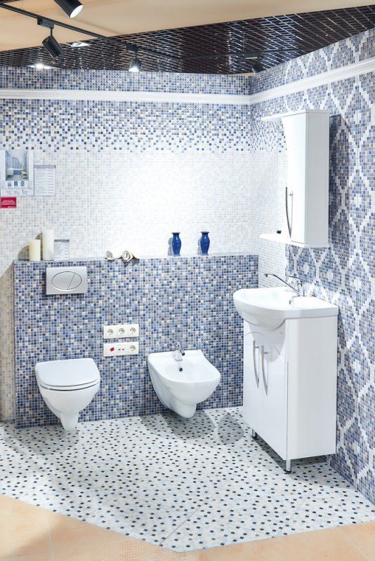 Фото интерьеров комнат, облицованных керамической плиткой Гламур синий.