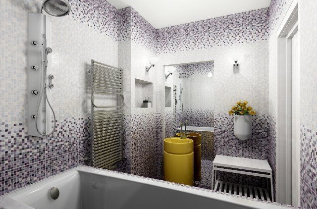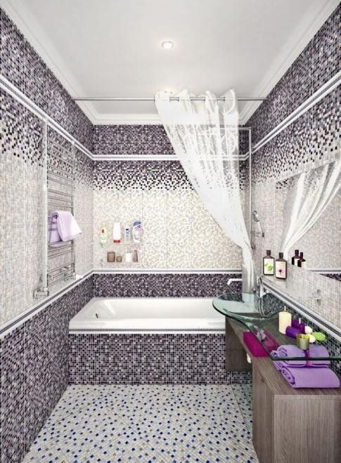 Фото интерьеров комнат, облицованных керамической плиткой Гламур (Glamour) Фиолетовый от производителя Керамин (Keramin).