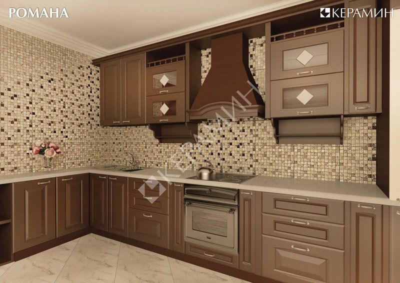 Фото интерьеров комнат, облицованных керамической плиткой Романа (Romana) от производителя Керамин (Keramin).