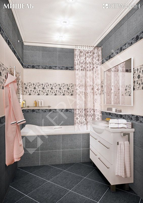 Фото интерьеров комнат, облицованных керамической плиткой Мишель (Michelle) Серый от производителя Керамин (Keramin).