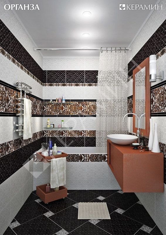Фото интерьеров комнат, облицованных керамической плиткой Органза (Organza) Черная от производителя Керамин (Keramin).