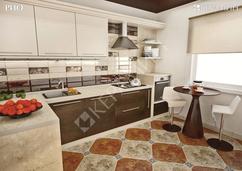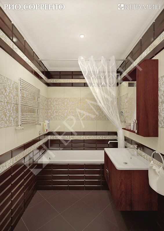 Фото интерьеров комнат, облицованных керамической плиткой Рио (Rio) от производителя Керамин (Keramin).