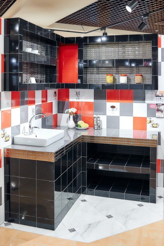 Фото интерьеров комнат, облицованных керамической плиткой Сан-Ремо оранжевый.