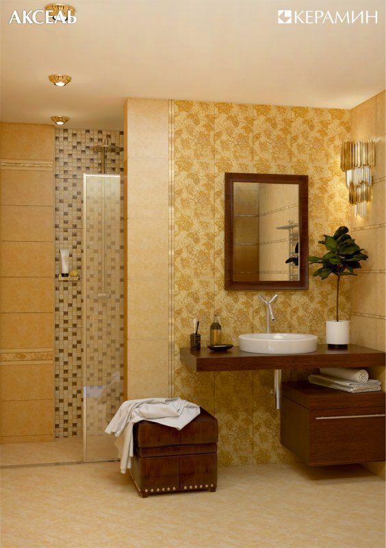 Фото интерьеров комнат, облицованных керамической плиткой Аксель (Axel) от производителя Керамин (Keramin).
