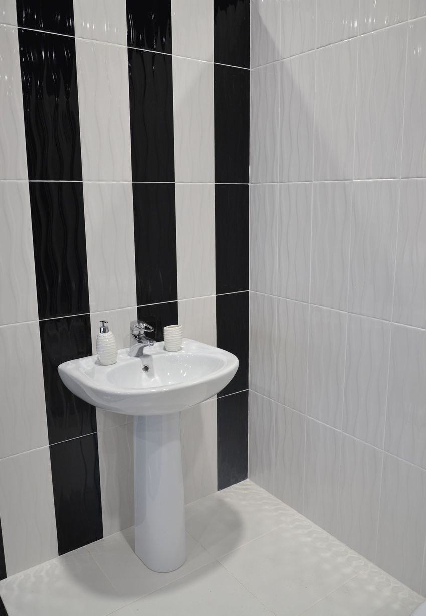 Особенностью керамической плитки является ее фактурная поверхность - рельефные волны по глянцевому покрытию. Благодаря этому приему керамика и само помещение кажется более объемным. Напольная плитка данной коллекции с матовым покрытием квадратного формата предлагается на выбор белого и черного цвета с мелкоузорчатым принтом.
