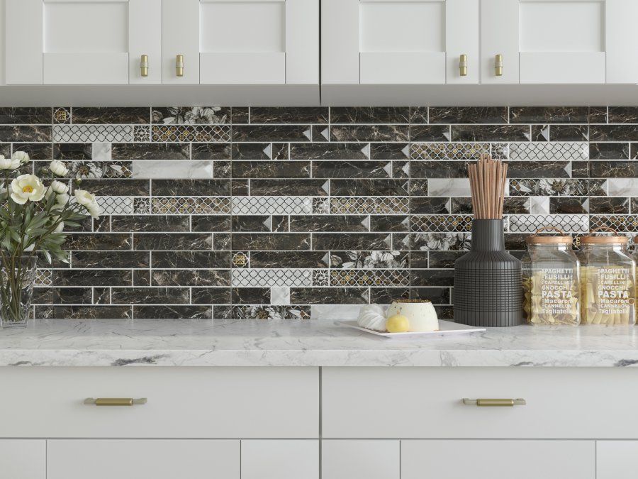 Сочетание тёмного и светлого мраморных рисунков с узорчатыми вкраплениями и объёмной текстурой поистине оживляет поверхность плитки. «Богатые» декоративные элементы оттеняют изысканную и сдержанную красоту природного камня, дополняя уникальный ансамбль Вашего интерьера.