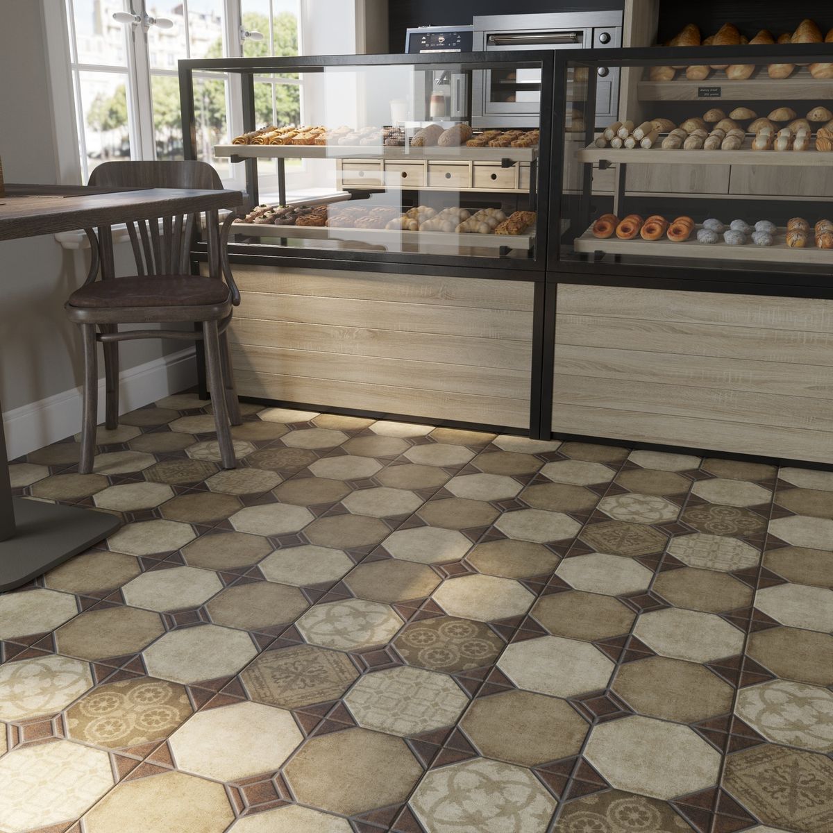Фото интерьеров комнат, напольной керамической плиткой Шале от производителя Керамин (Keramin).