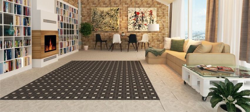 Фото интерьеров комнат, облицованных керамогранитной плиткой Айвенго (Aivengo) от производителя Керамин (Keramin).