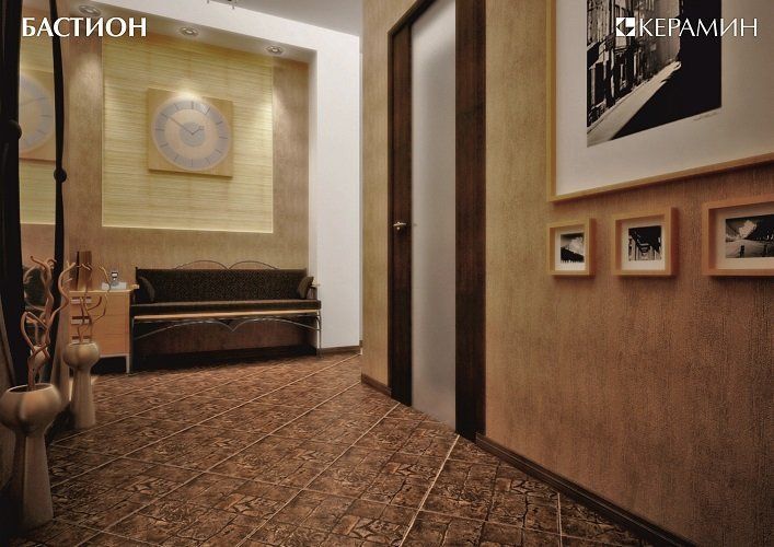 Фото интерьеров комнат, облицованных керамогранитной плиткой Бастион (Bastion) от производителя Керамин (Keramin).