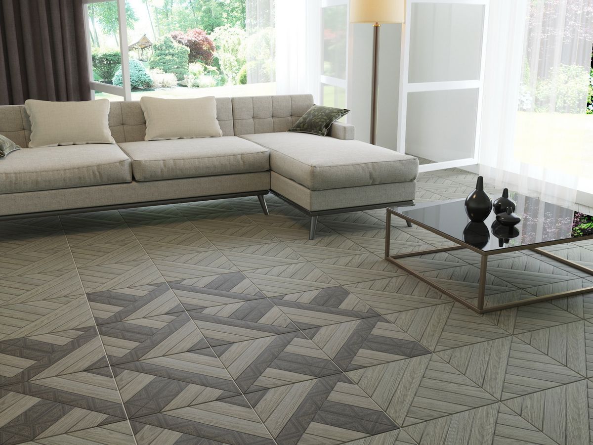 Интарсия Серый (Intarsia Grey) - коллекционная керамогранитная плитка Керамин (Keramin)