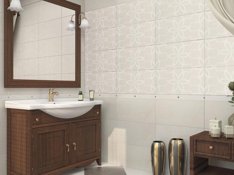 Фото интерьеров комнат, облицованных керамической плиткой Fiore Crema от производителя AltaCera