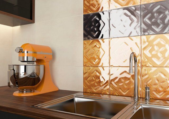 - Металлизированные варианты не требуют сложностей в уходе, практичны в эксплуатации. Однако, вносят с дизайн кухни холодность.