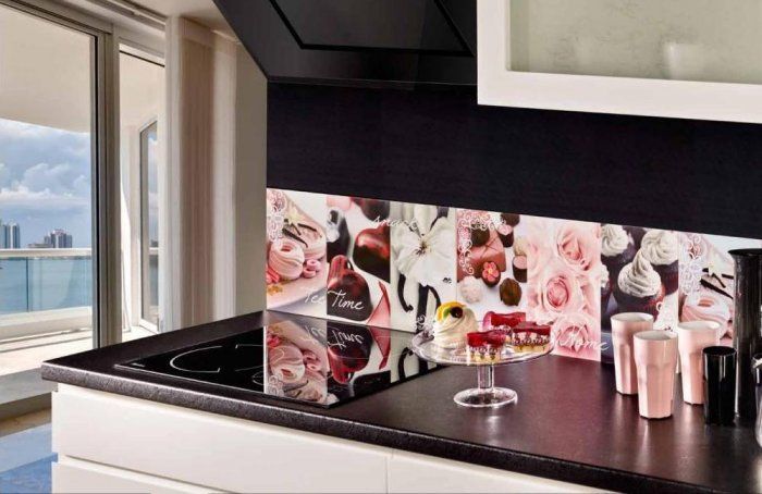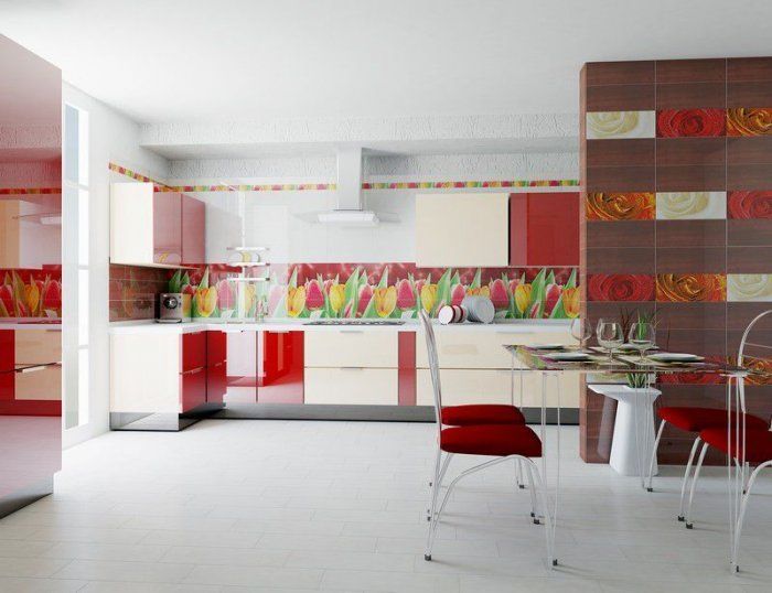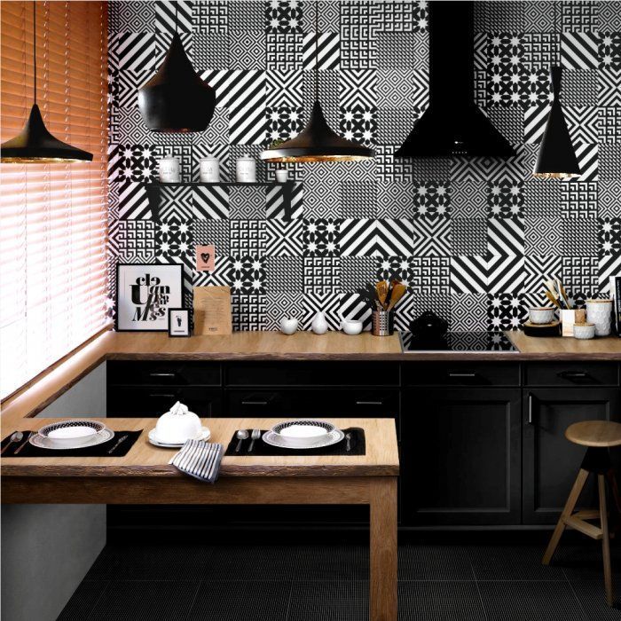 - Принты. В ней воплощены качество, отличные характеристики и приемлемая стоимость. Пожалуй, это самая яркая и необычная плитка для кухни, фото с орнаментами и принтами является ярким доказательством тому