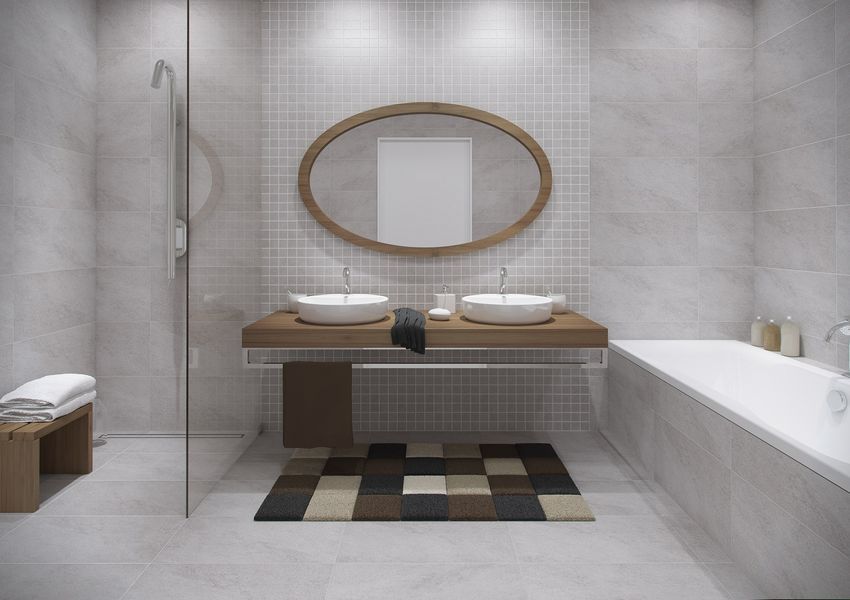Фото интерьеров комнат, облицованных керамогранитной плиткой Каро (Karoo) от производителя Опочно (Opoczno).
