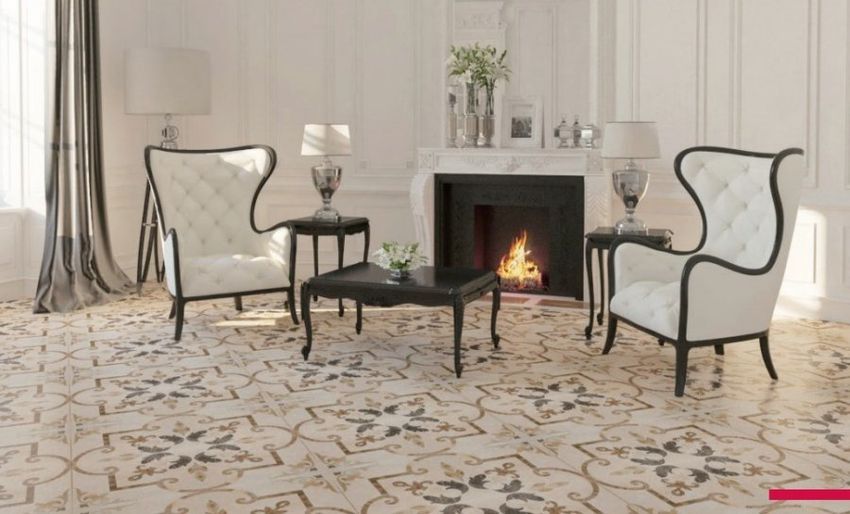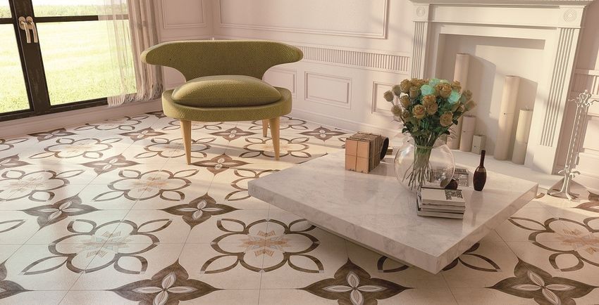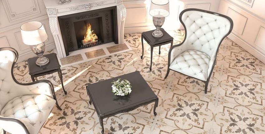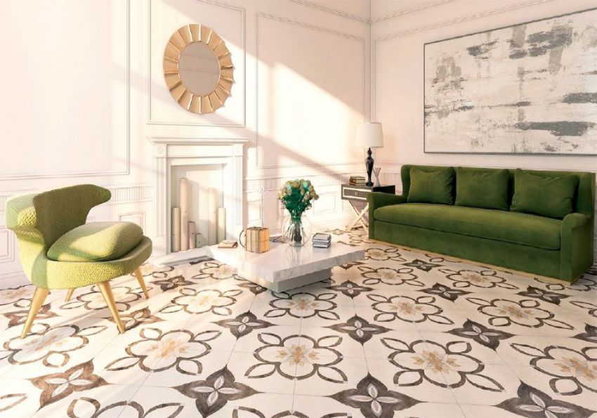 Фото интерьеров комнат, облицованных керамогранитной плиткой Санторини Серкл (Santorini Circle) от производителя Опочно (Opoczno).