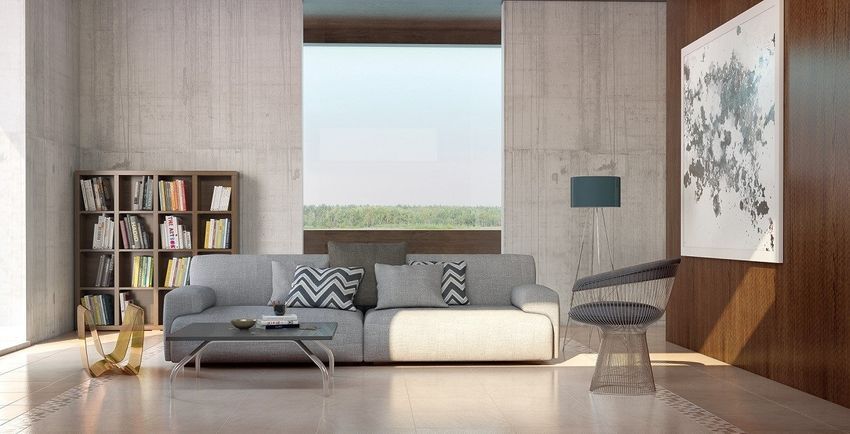 Фото интерьеров комнат, облицованных керамогранитной плиткой Бек Ленд (Back Land) от производителя Опочно (Opoczno).
