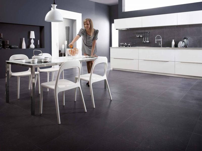 Фото интерьеров комнат, облицованных керамогранитной плиткой Базальто (Bazalto) от производителя Опочно (Opoczno).