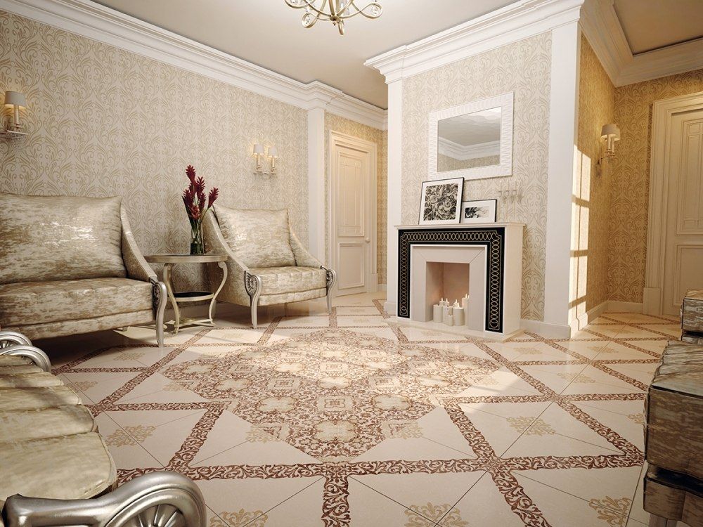 Фото интерьеров комнат, облицованных керамогранитной плиткой Аликанте (Alikante)
