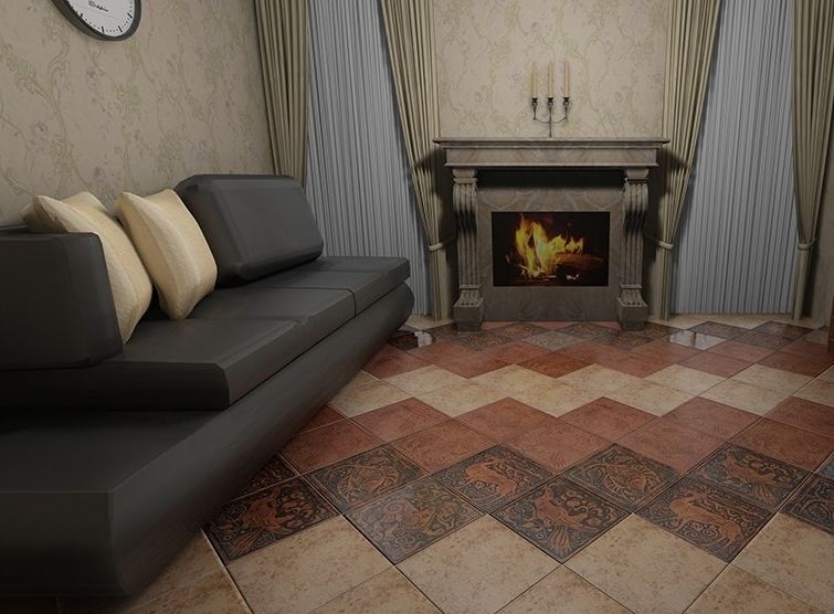 Фото интерьеров комнат, облицованных керамогранитной плиткой Родос (Rodos)