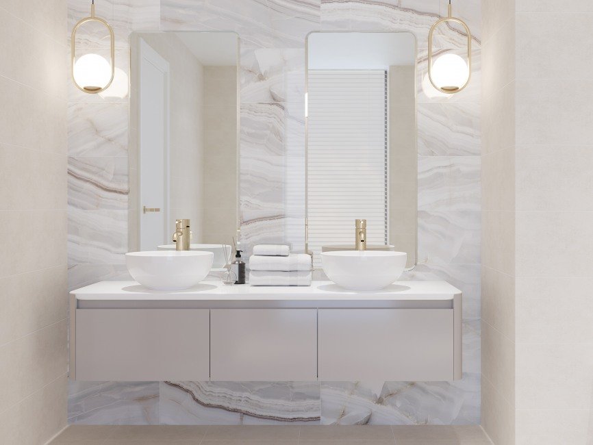 Фото интерьеров комнат, облицованных керамической плиткой Onix (Оникс) от производителя Meissen Keramik.