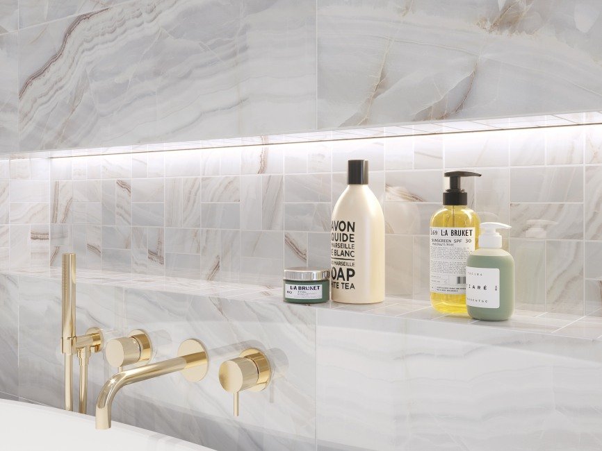 Коллекционная плитка для стен и пола Onix (Оникс) . Размер настенной плитки 250*750, напольной плитки 420*420. Тип поверхности: настенная - глянцевая; напольная - матовая.