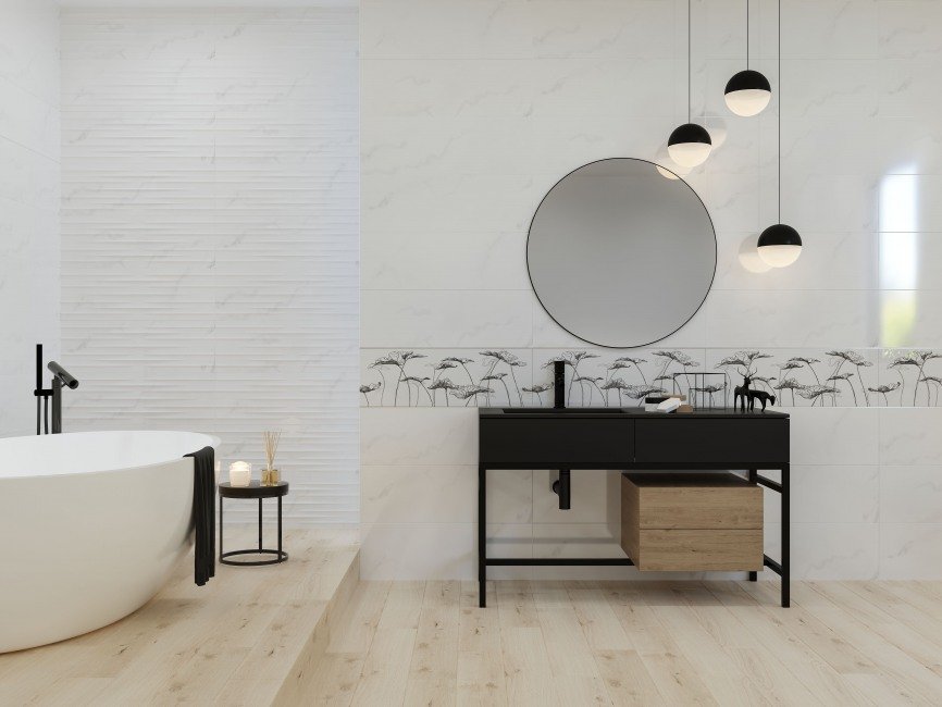 Коллекционная плитка для стен и пола Elegance (Элеганс). Размер настенной плитки 250*750, напольной плитки 420*420. Тип поверхности: настенная - глянцевая; напольная - матовая.