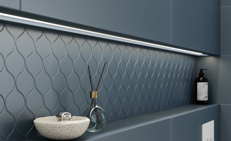 Фото интерьеров комнат, облицованных керамической плиткой Ocean Romance (Оушен Романс) от производителя Meissen Keramik.